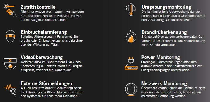 Durch IoT-Technologie ist KentixONE nahtlos in Ihre bestehende IT-Umgebung integrierbar, unkompliziert zu bedienen, immer perfekt kompatibel und grenzenlos erweiterbar – bei Bedarf auch um Brandfrüherkennung und vielseitiges Monitoring. So haben Sie die volle Kontrolle und wehren bis zu 40 Gefahren ab, bevor es zu Schäden und Verlusten kommt.